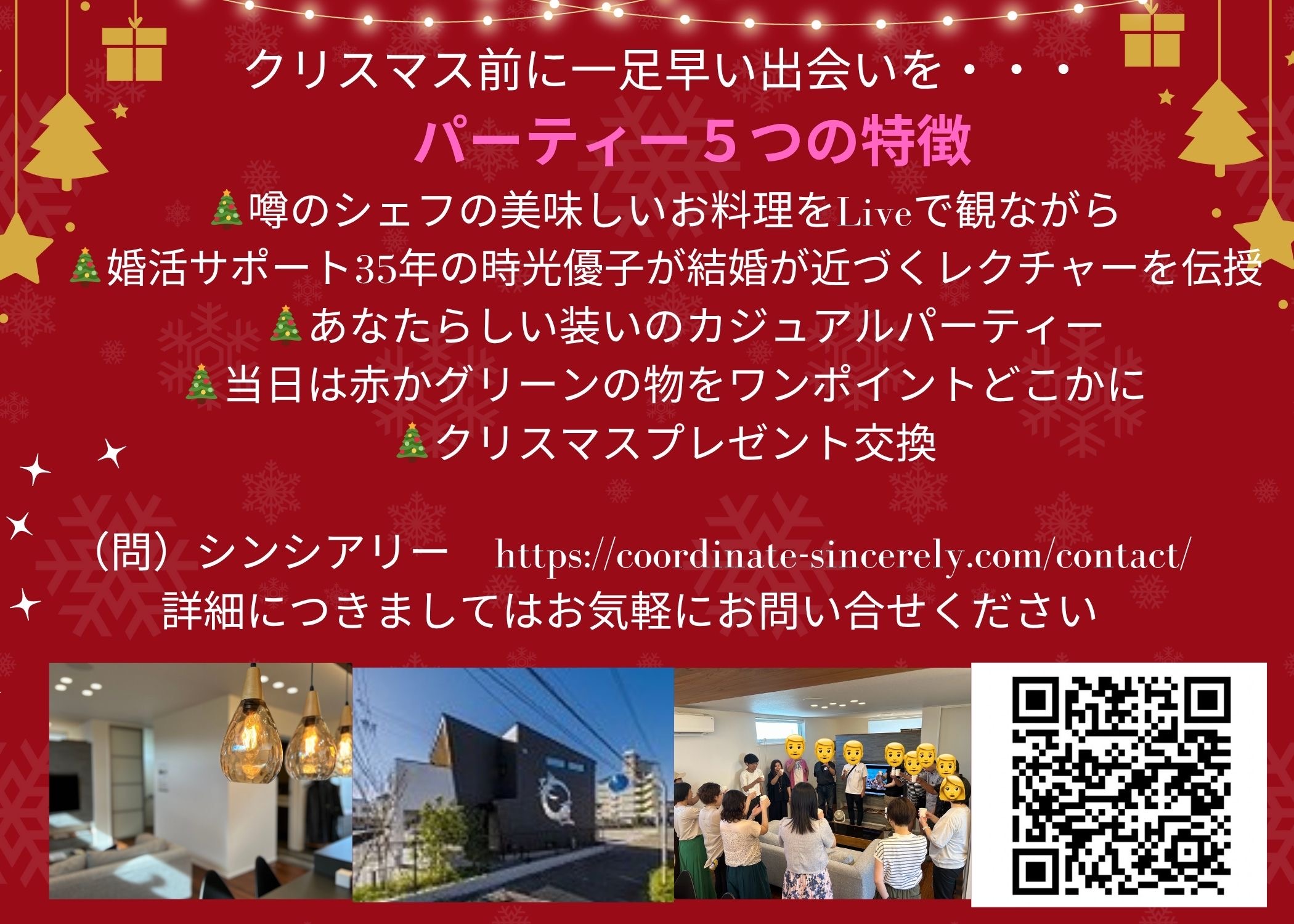 是非、クリスマス前のパーティーでクリスマス本番デートのできるお相手見つけにお越しください😊