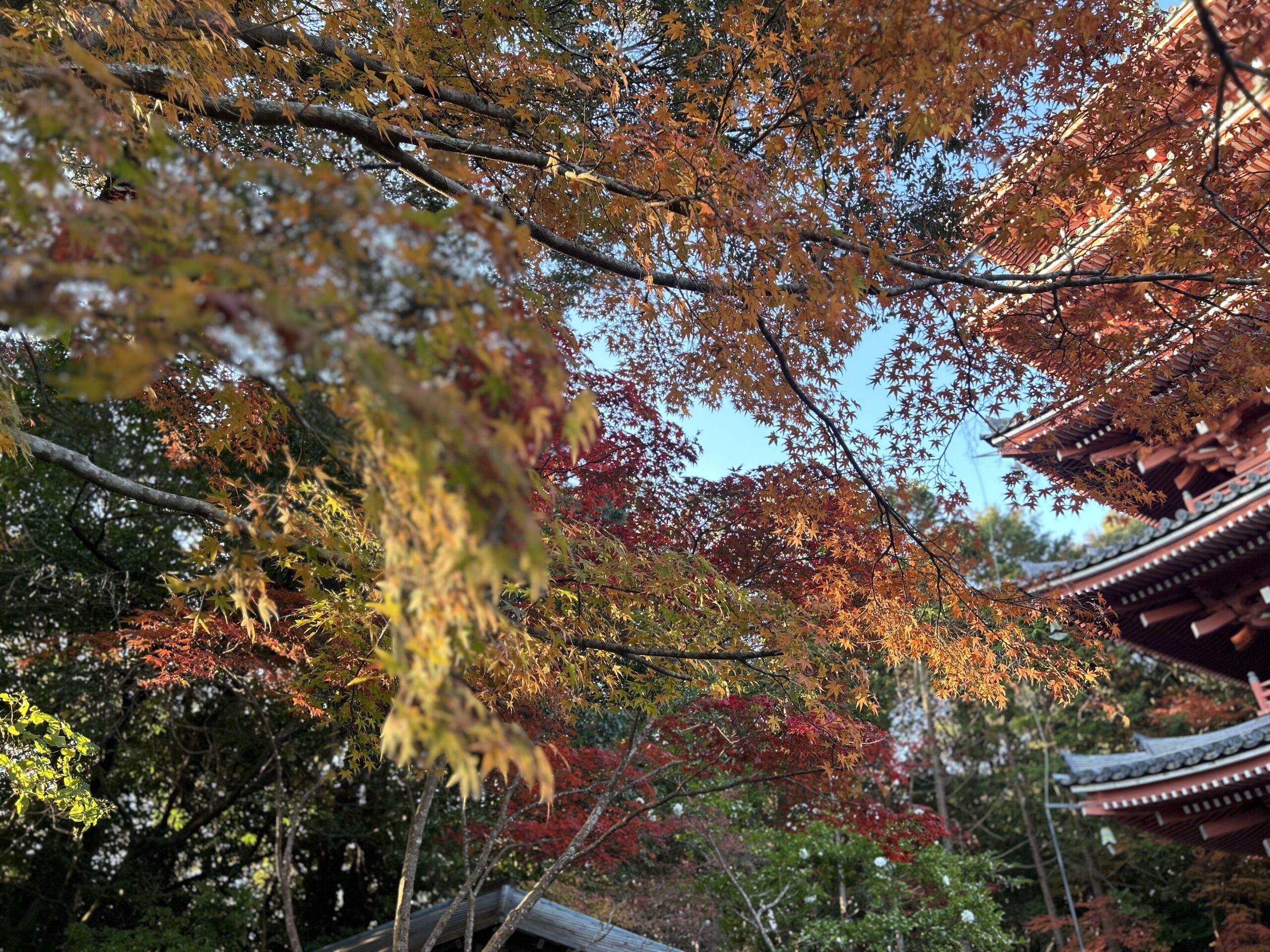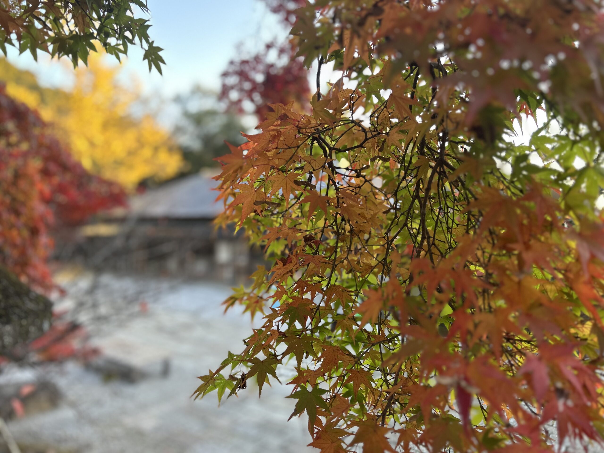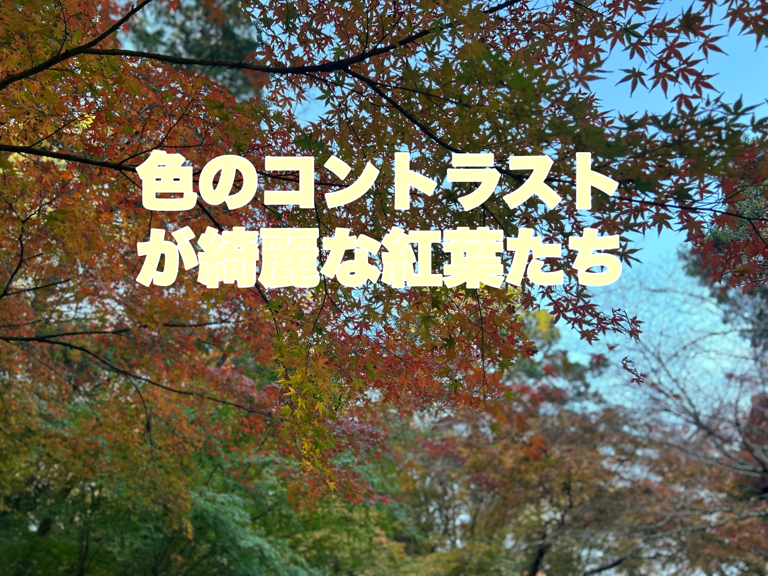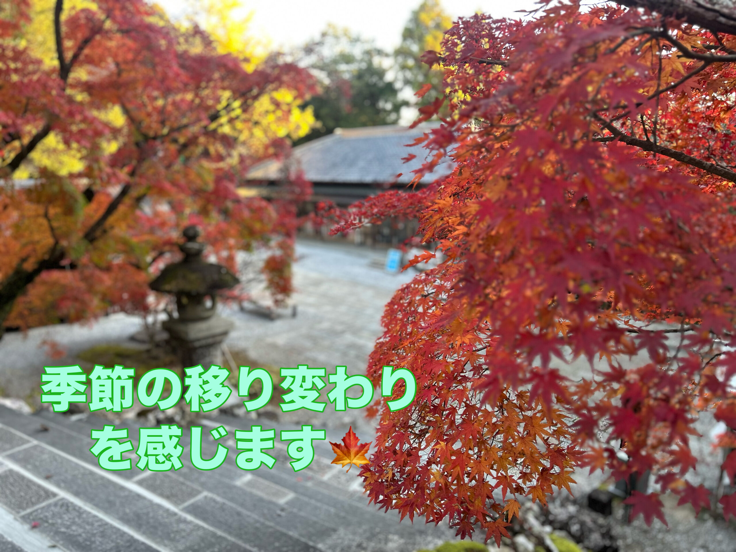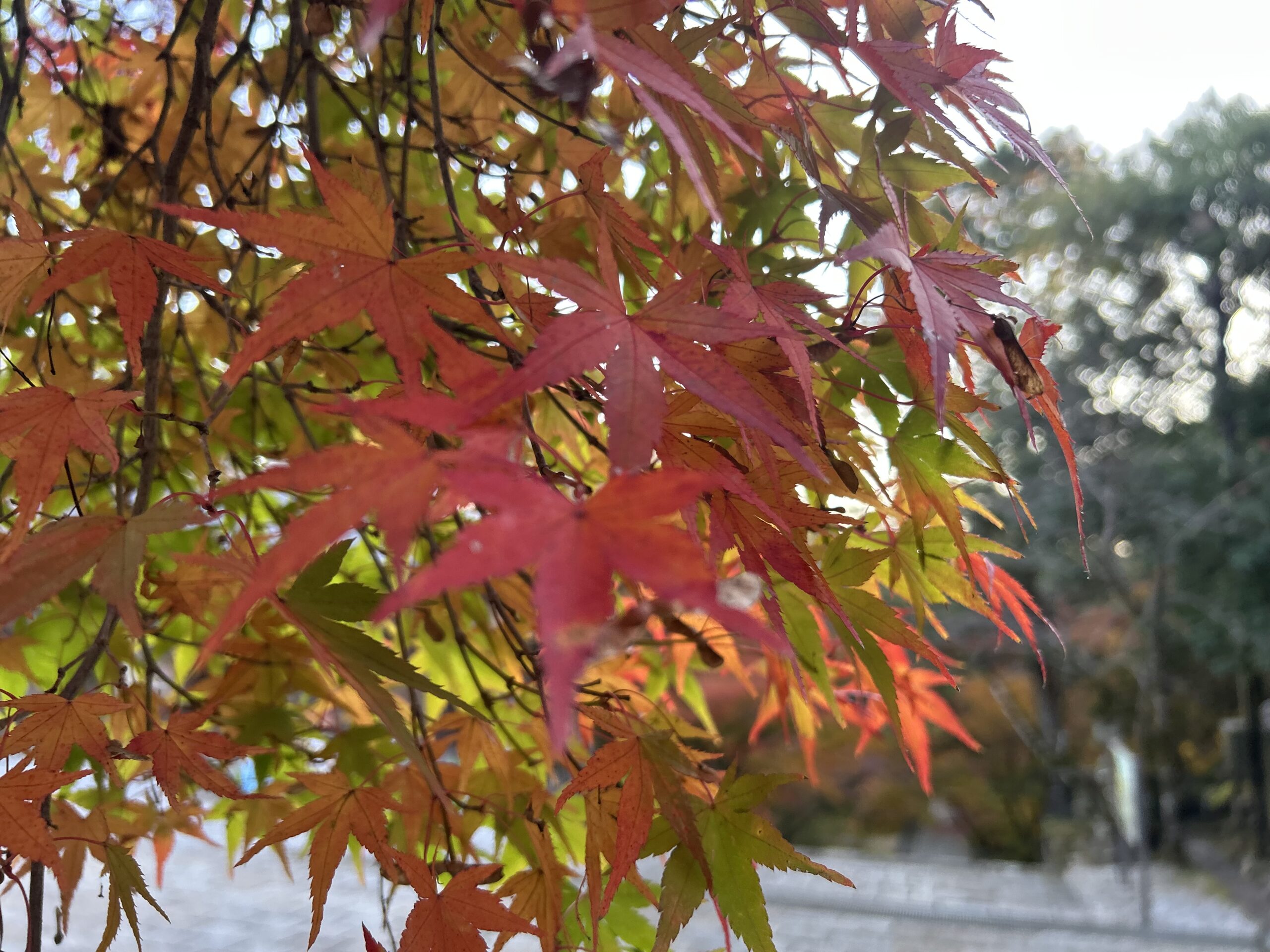 先月から随分と色づく、季節の移ろいを感じます。胃腸の葉っぱが絨毯のように敷き見られ、紅葉も赤や、黄色、緑と彩りの変化に美しさを感じます。