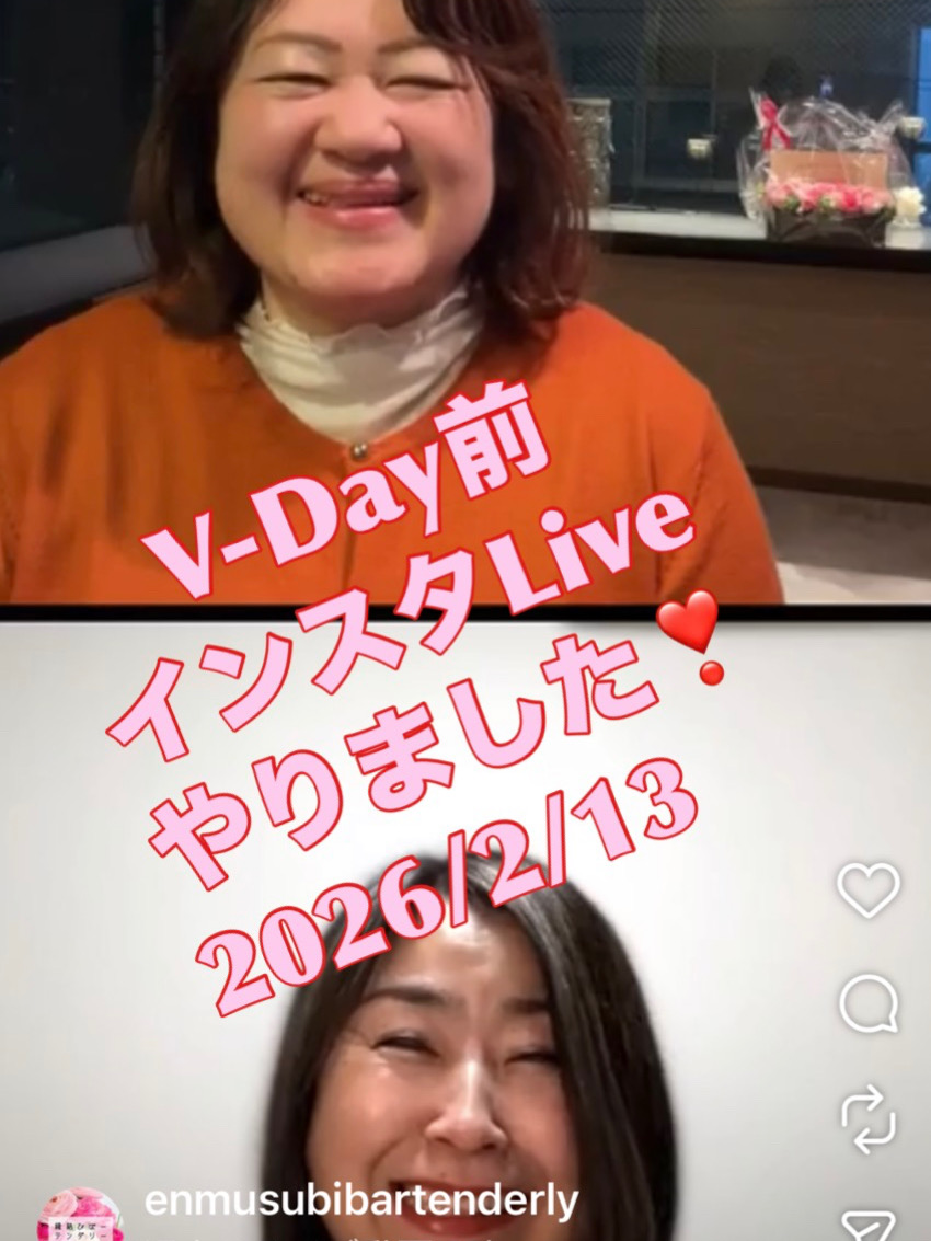 V-Day前インスタLiveやりました 投稿日: 2026年2月13日2026年2月13日 投稿者: yuko.t バレンタインデー前夜の今日。 香川県高松市の縁結びばーテンダリーの管東仲人とインスタLiveをしました。 是非是非聞いてね〜🤗 Screenshot